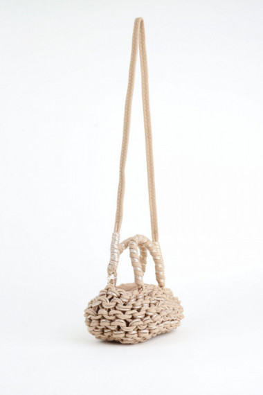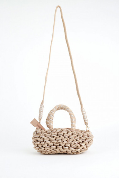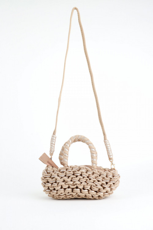 Borsina Intrecciata all'Uncinetto con Filo Grosso, Manici Piccoli e Tracolla Rimovibile, Chiusura Zip.