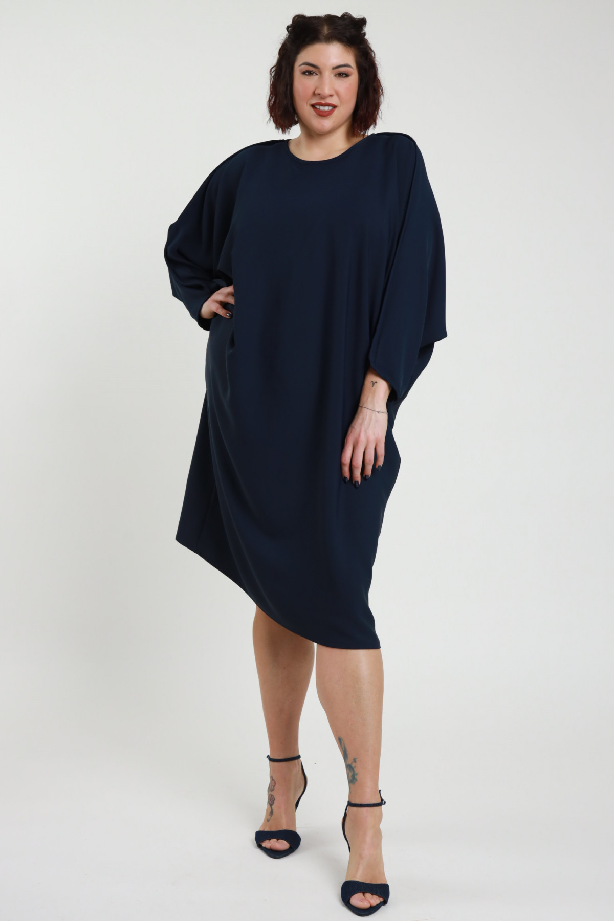 Abito in Tessuto Fluido con Riprese sulle Spalle e Maniche Ampie - Linea Curvy Susy Star.