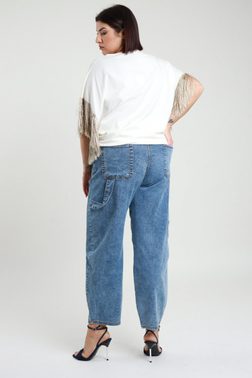Jeans Modello Work con Applicazioni Strass - Linea Curvy Susy Star. 98%co 2%ea