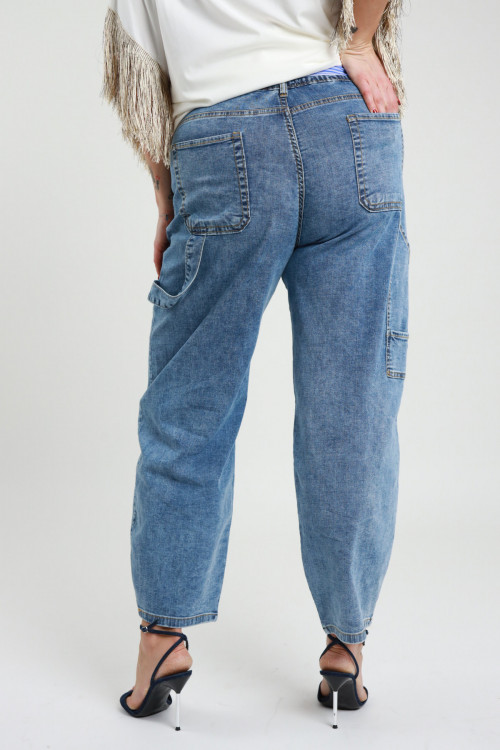 Jeans Elasticizzato Marmorizzato Modello a Banana con Ghetta sul Fianco - Linea Curvy Susy Star.