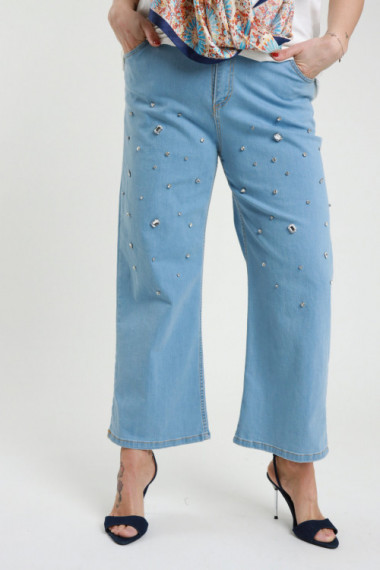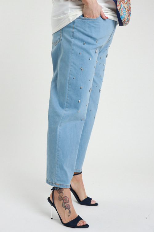 Jeans Gamba Dritta con Applicazione Strass in Cotone Elasticizzato - Linea Curvy Susy Star.
