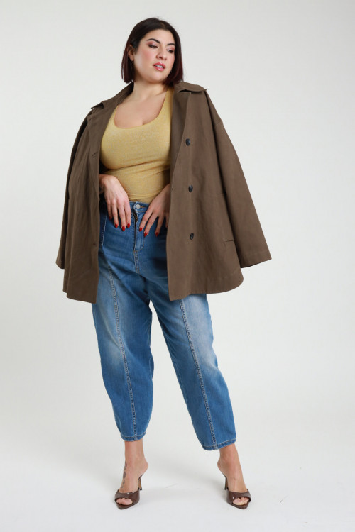 Giacca Caban in Cotone, Doppiopetto con Ripresa sul Retro - Linea Curvy Susy Star.