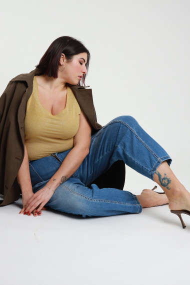 Canotta Lurex a Spalla Larga, Taglio Vivo - Linea Curvy Susy Star.