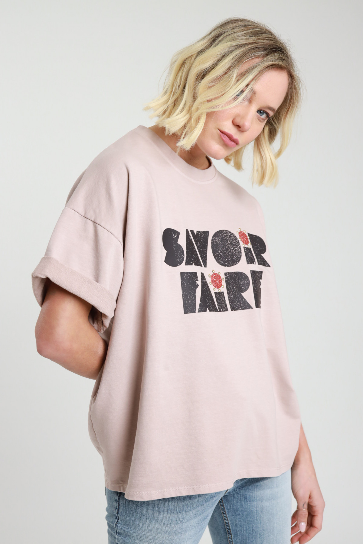 Felpa Over Maniche Corte con Stampa "Savoir Faire" sul Fronte e Borchiette.