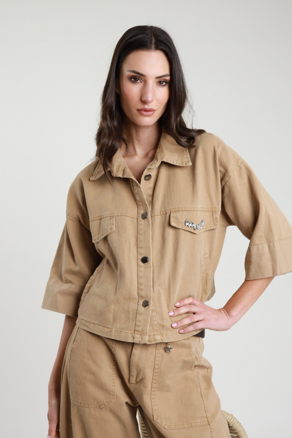 Giacca Bull Denim Maniche 3/4 con Applicazione Strass.