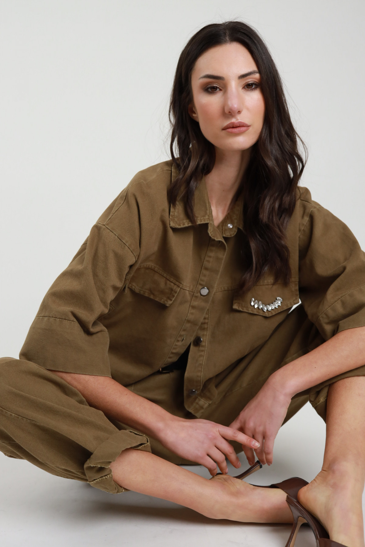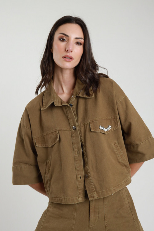 Giacca Bull Denim Maniche 3/4 con Applicazione Strass.