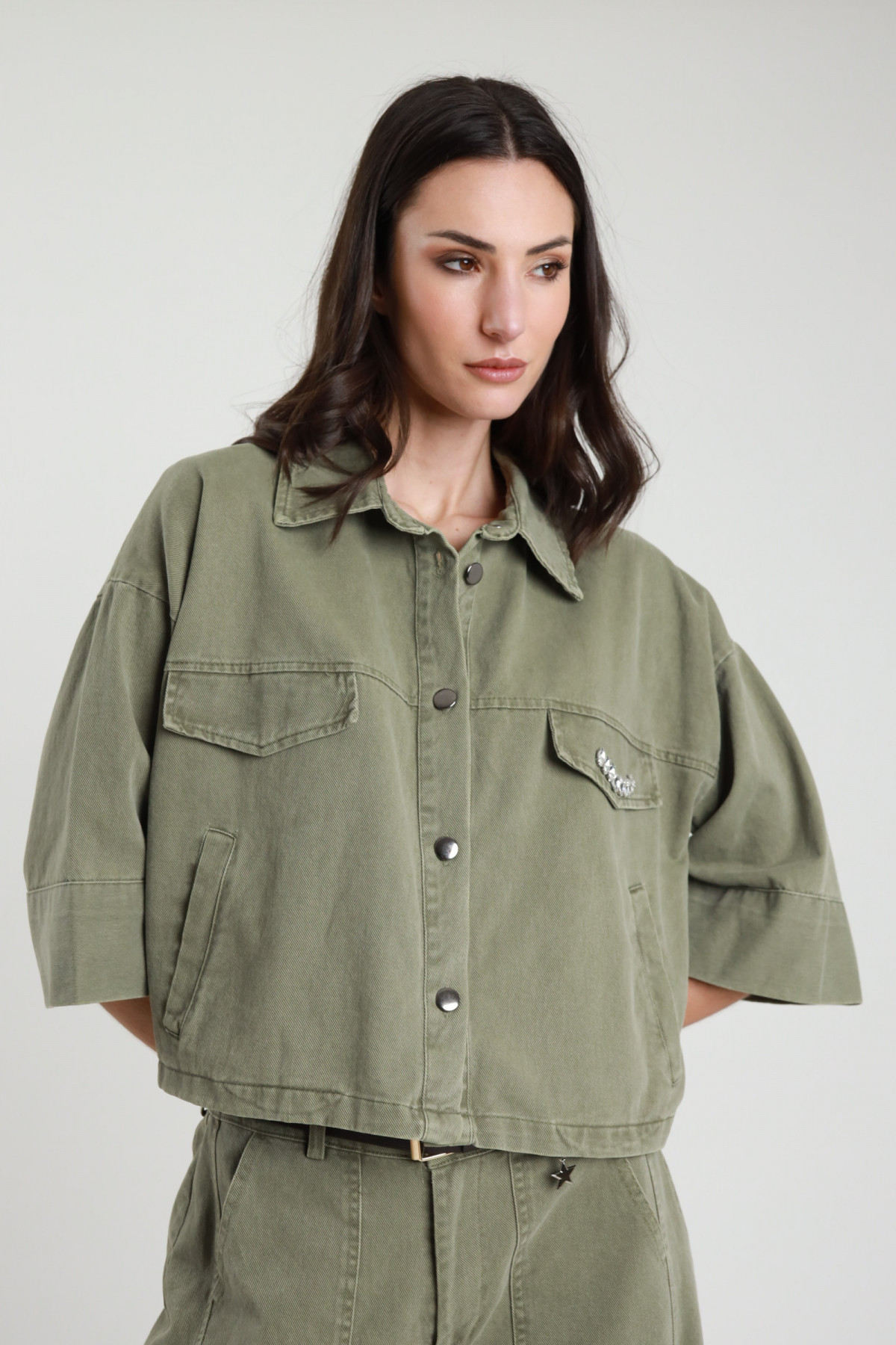 Giacca Bull Denim Maniche 3/4 con Applicazione Strass.