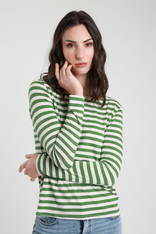 T-shirt Maniche Lunghe a Righe con Girocollo in Lurex.