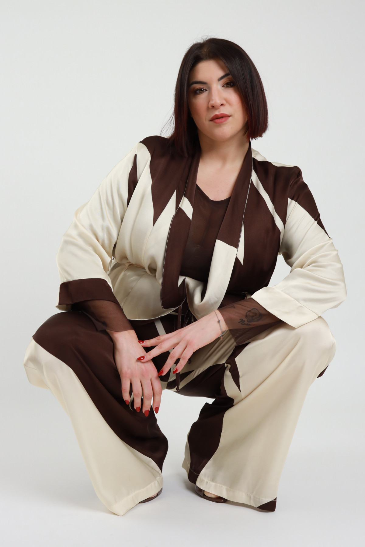 Cardigan in Viscosa in Fantasia con Chiusura Lacci in Vita - Linea Curvy Susy Star.