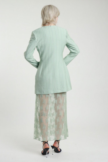 Abito Lungo in Pizzo + Blazer Doppiopetto Gessato Senza Rever.