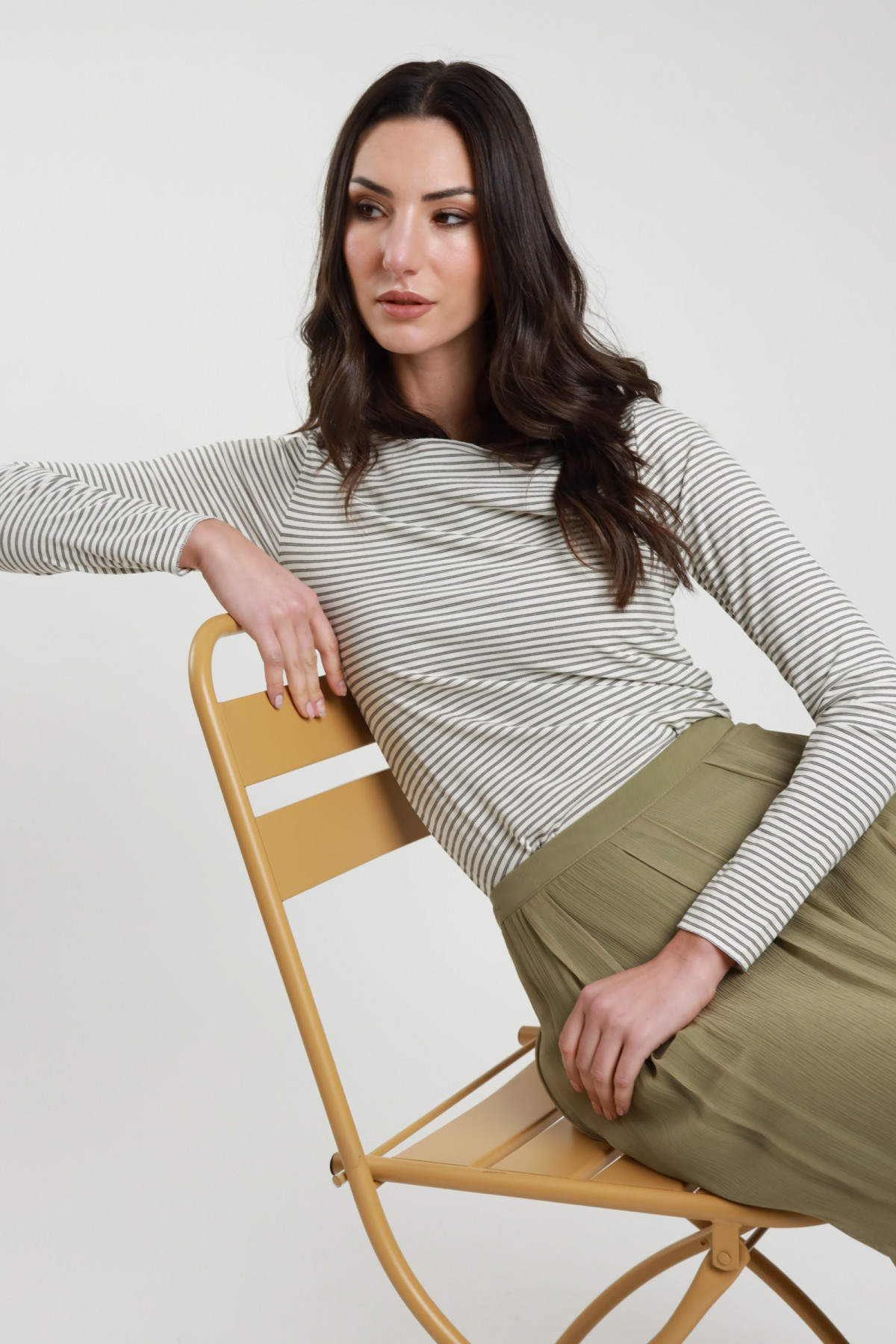 T-Shirt Maniche Lunghe in Viscosa Elasticizzata, a Righe.