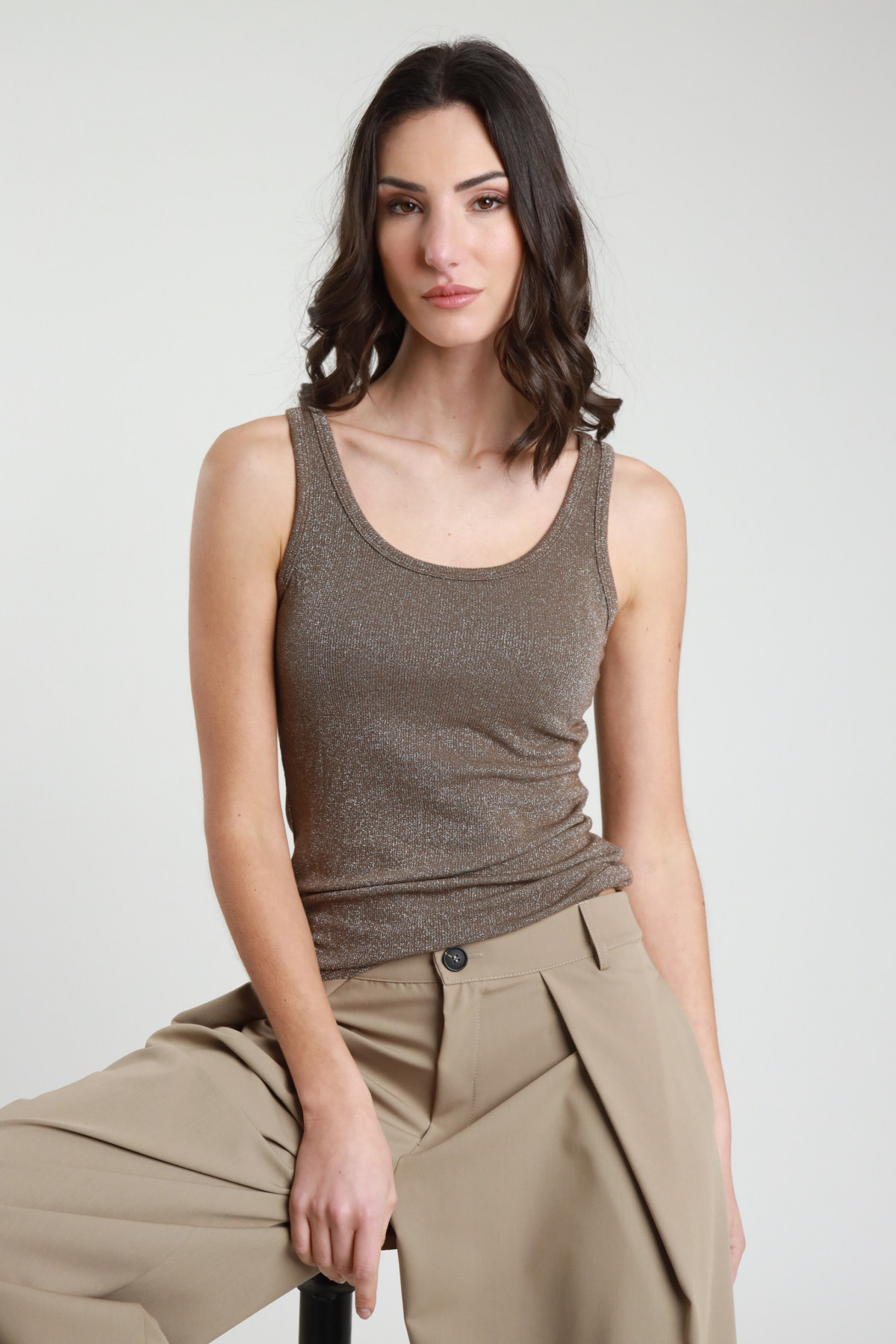 Canotta Scollo V a Costine in Lurex.
