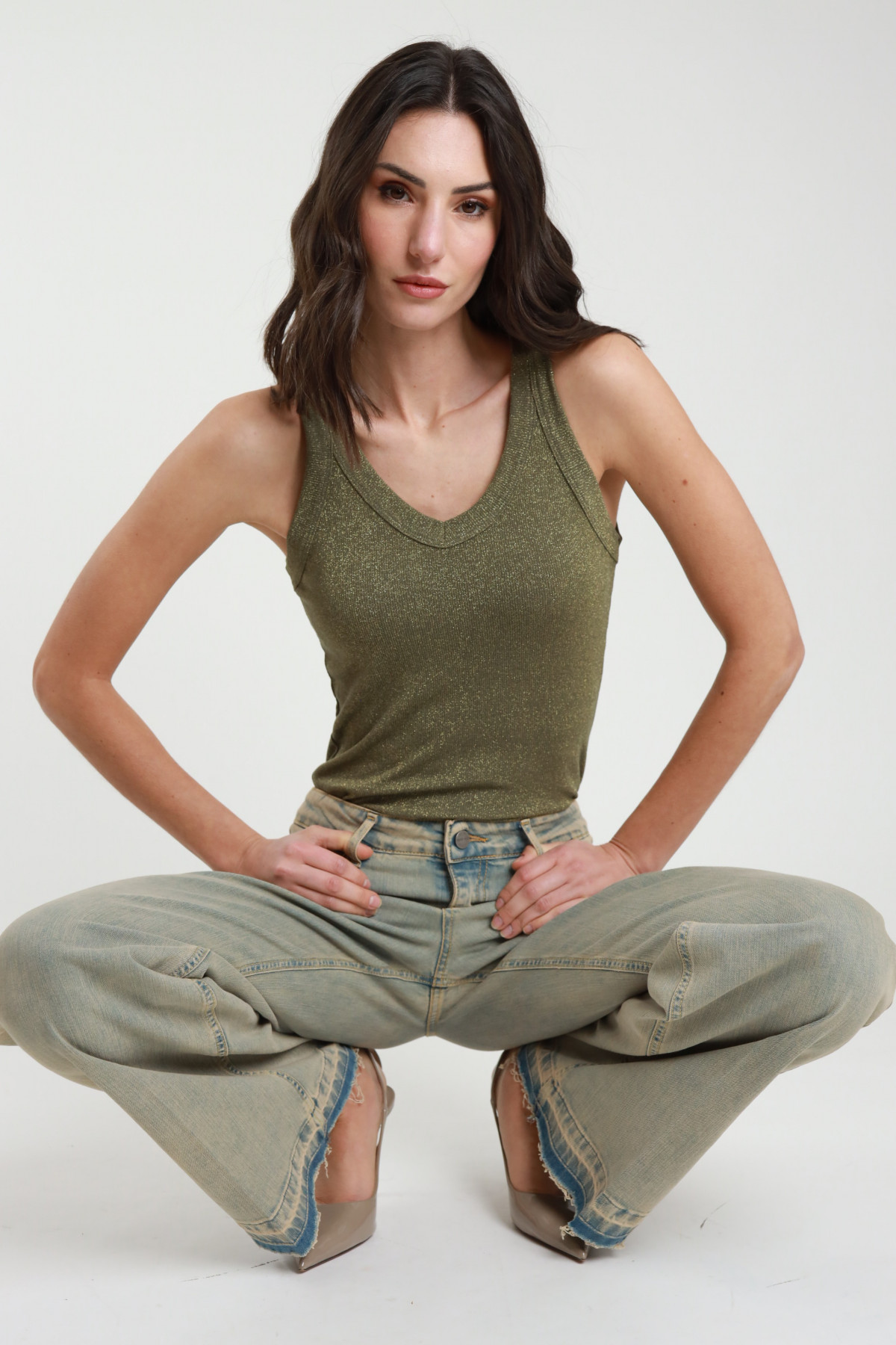 Canotta Scollo V a Costine in Lurex.