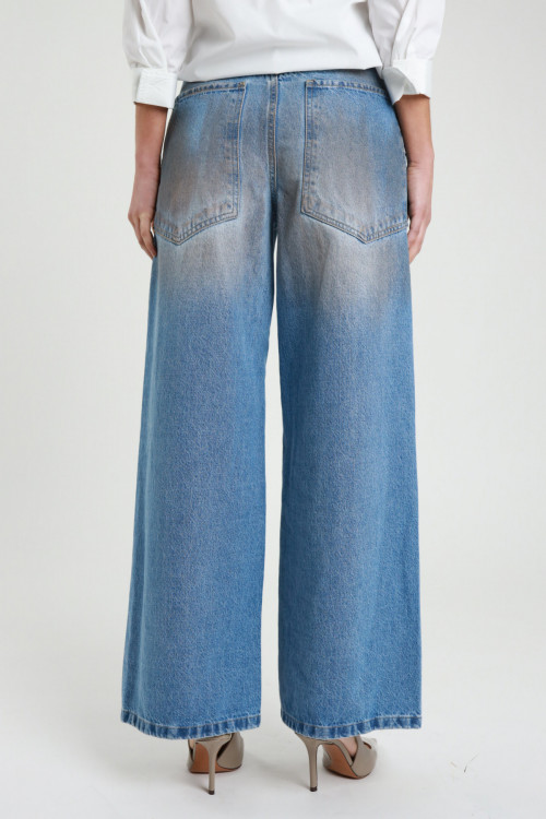 Jeans in Cotone a Palazzo - Extra Wide Leg con Lavaggio Sporcato.