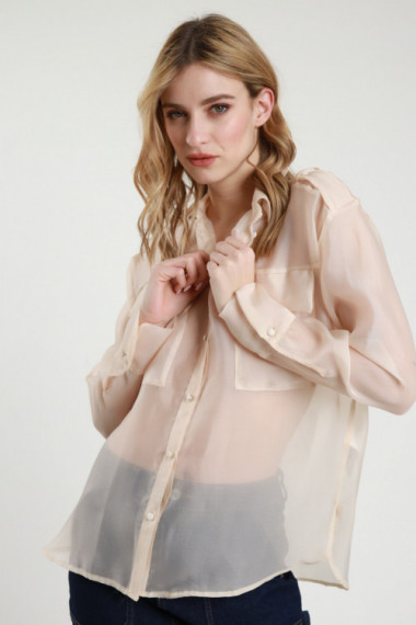 Camicia in Organza con Taschine con Pattina Applicate sul Fronte.