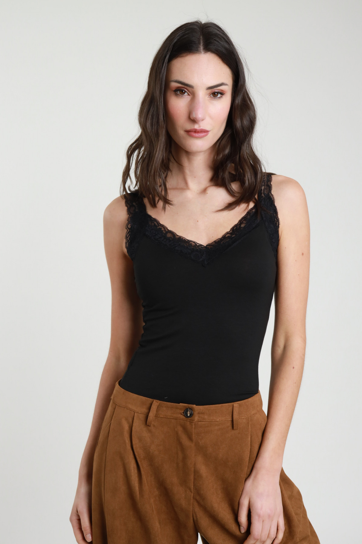 Canotta Canettata Con Scollo Tondo e Spalline Strette, Borchiette In Strass Apllicate. 95%co 5%ea