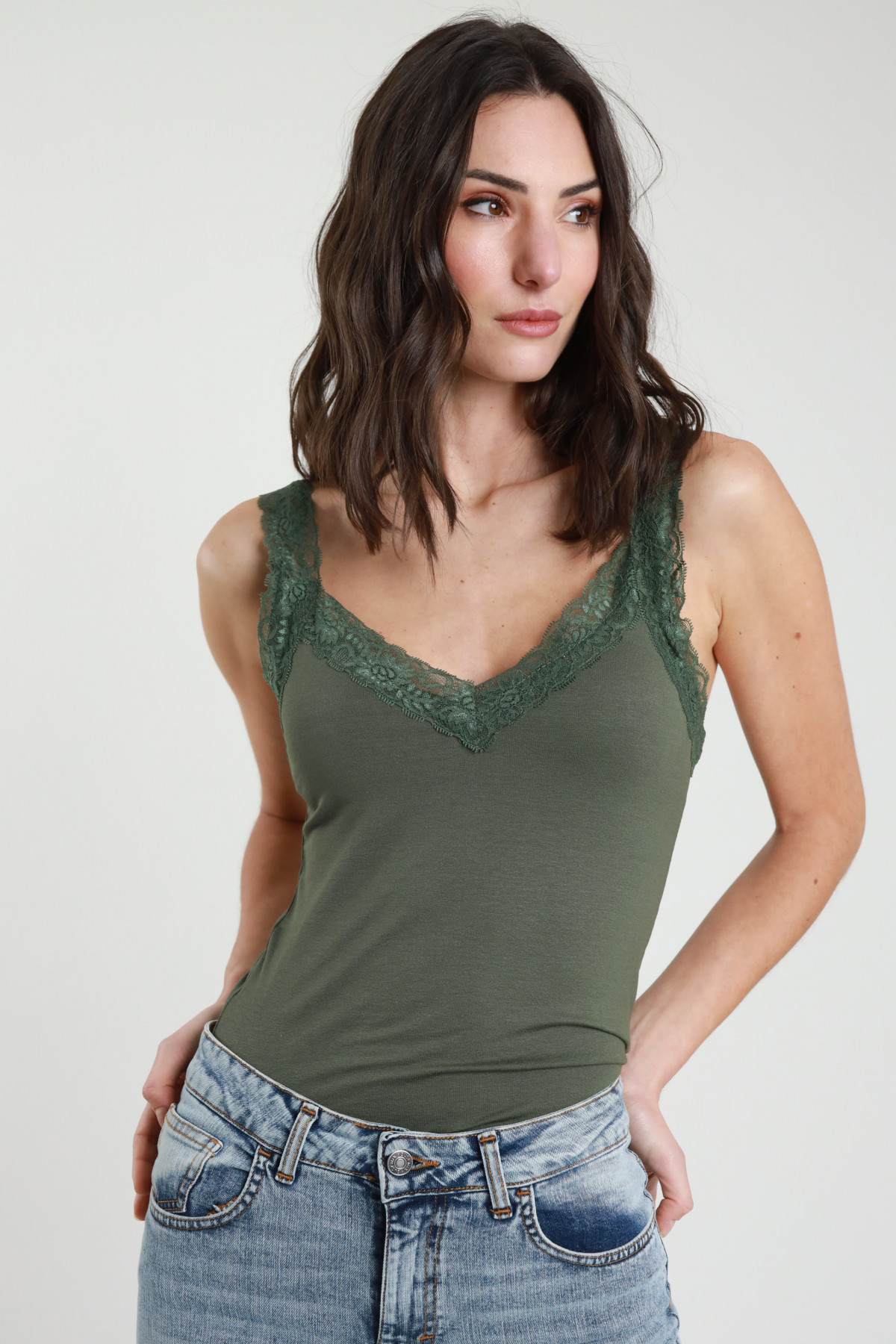 Crop-Top aus Spitze mit schmalen Trägern und gepolsterten Körbchen. 90%ny 10%ea