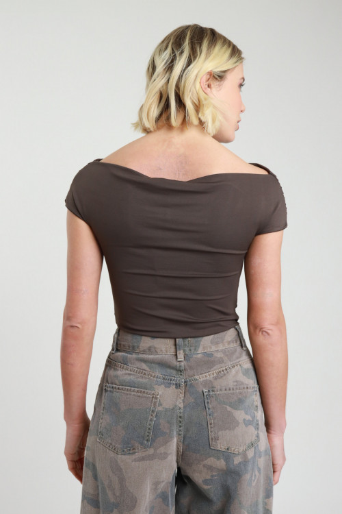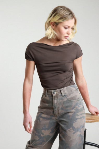 Top Scollo Morbido con Arriccio sui Lati, Manica Corta.