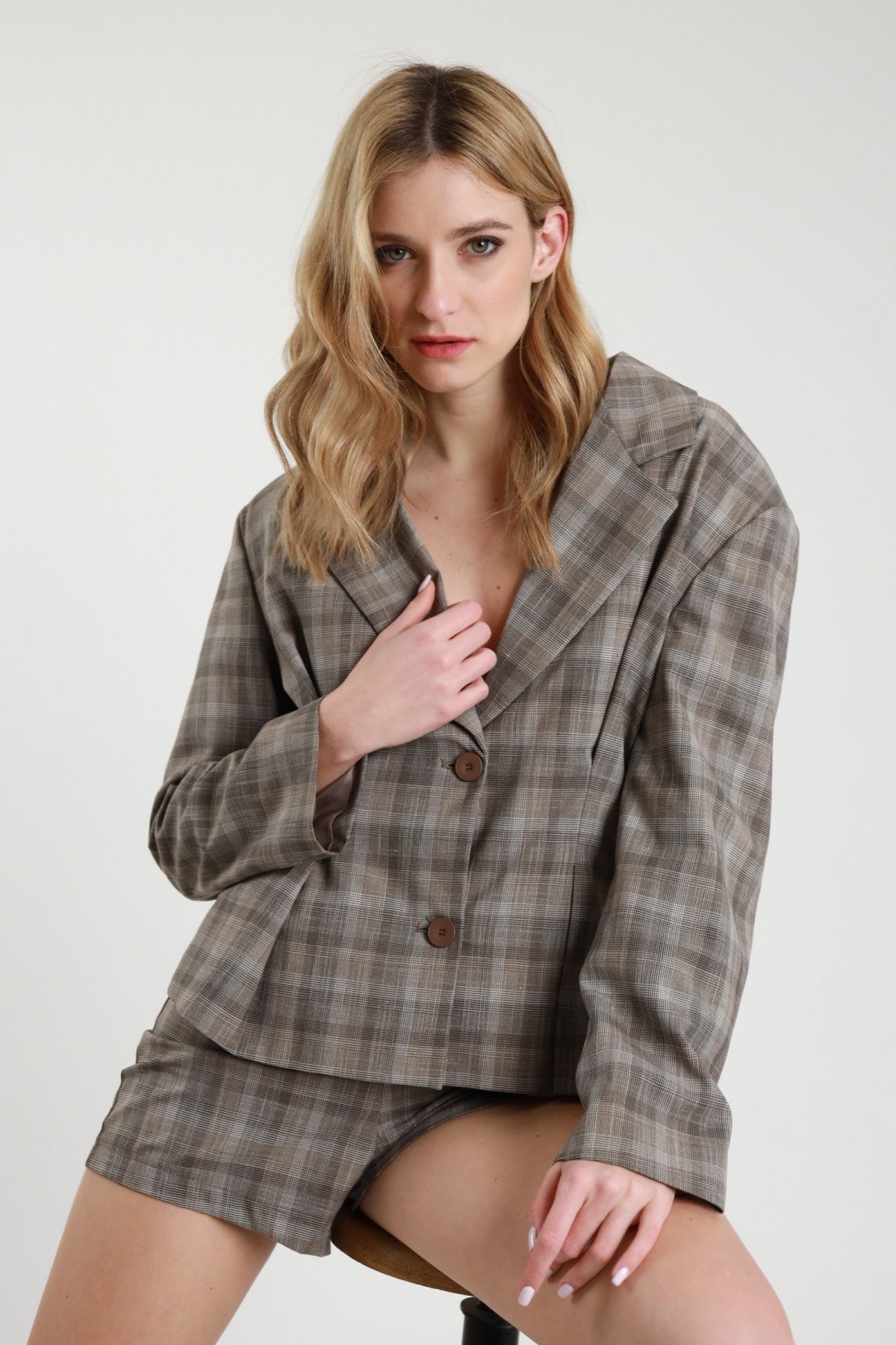 Blazer in Fantasia Check, Sfiancato, con Riprese sul Fronte e sul Retro.