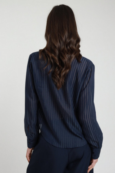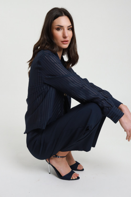Blusa Gessata Ton sur Ton con Cravattina e Dettaglio Dorato.
