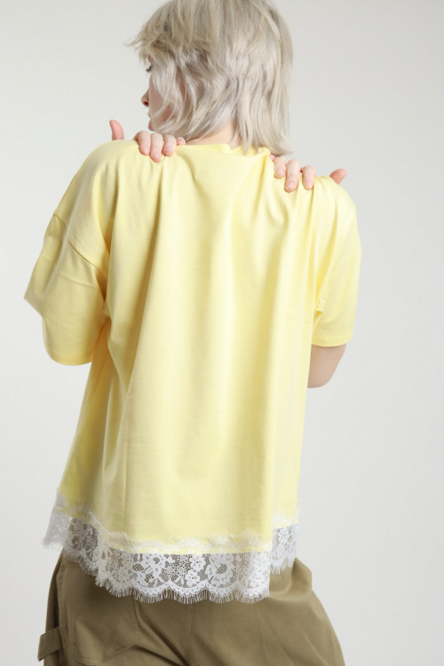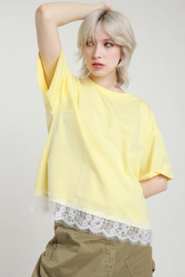 T-shirt Girocollo Maniche Corte + Pizzo sul Fondo.