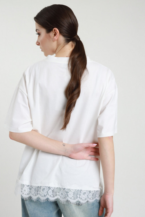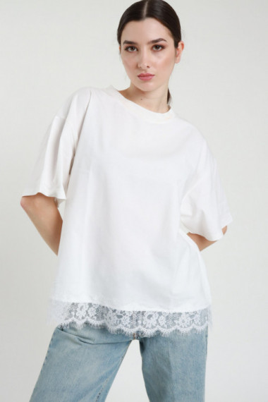 T-shirt Girocollo Maniche Corte + Pizzo sul Fondo.