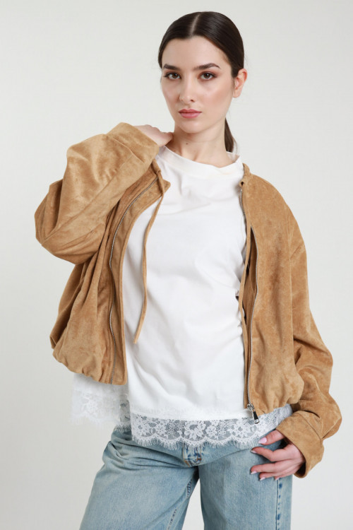 Bomber in Ecodainetto, Chiusura Zip + Laccetto Collo.