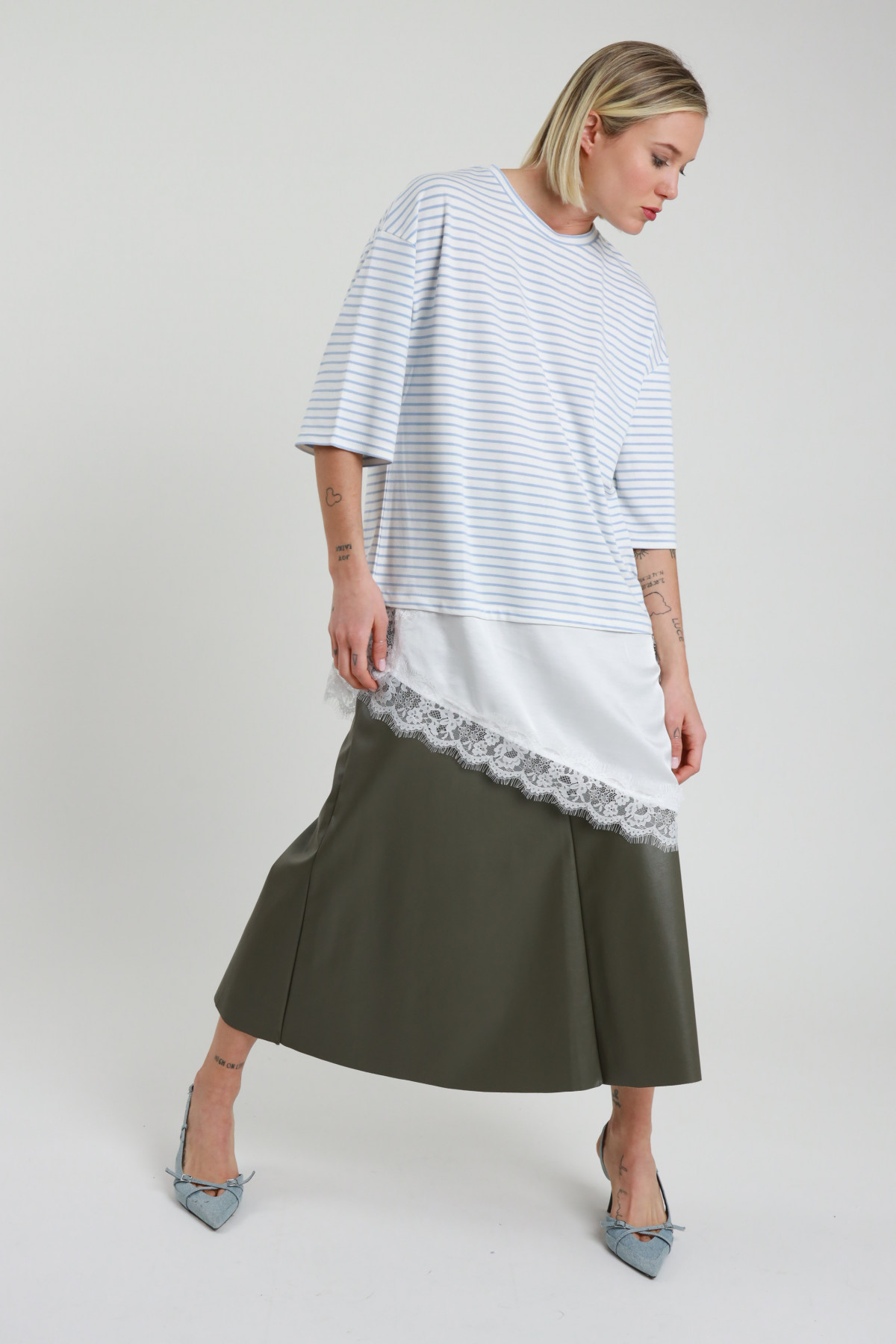 T-Shirt Over Rigata con Sottoveste