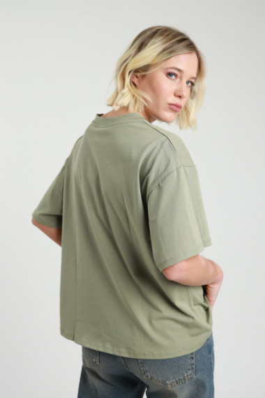 T-Shirt Over Girocollo Maniche Corte con Stampa sul Fronte ''Miami Beach''.