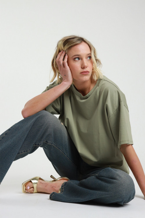T-shirt in Cotone a Maniche Corte Oversize.