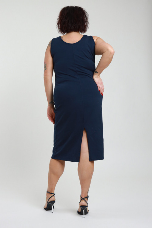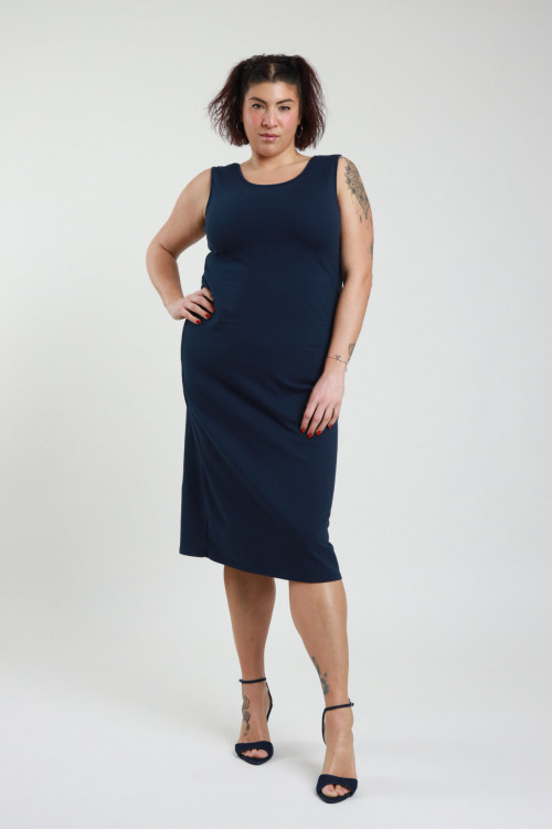 Abito Midi in Cotone Elasticizzato, Smanicato con Maglia Scollo a Barca - Linea Curvy Susy Star. 95%co 5%ea