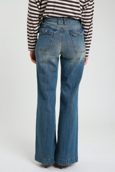 Jeans Gamba Dritta con Taschine Applicate sul Fronte e Tasche con Pattina e Chiusura Bottone sul Retro.