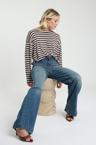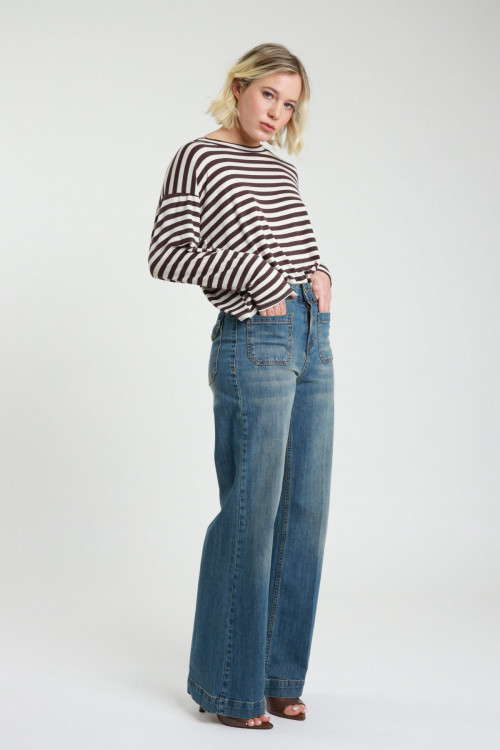 Palazzo-Baumwolljeans – Extraweites Bein mit Dirty-Waschung. 100 % Co