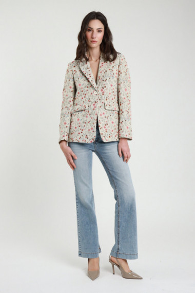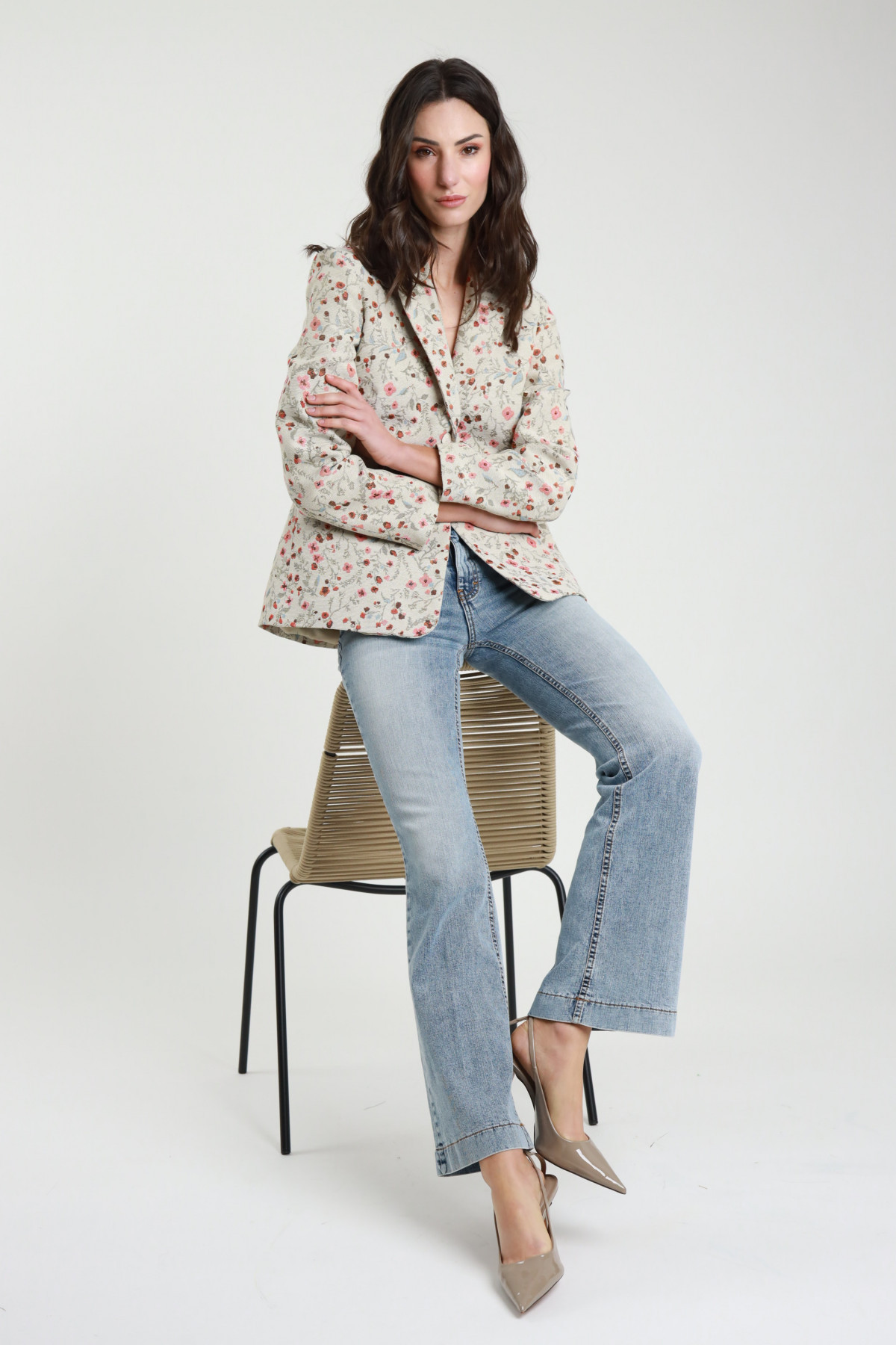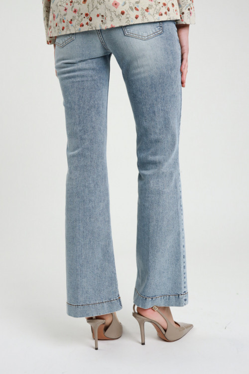 Jeans Flare in Cotone Elasticizzato, Lavaggio Chiaro Marmorizzato, Tasche con Patte sul Retro.