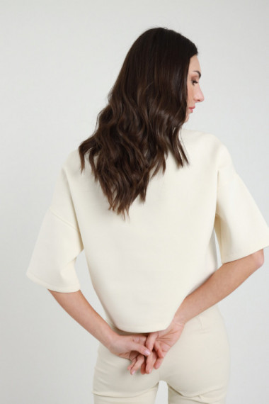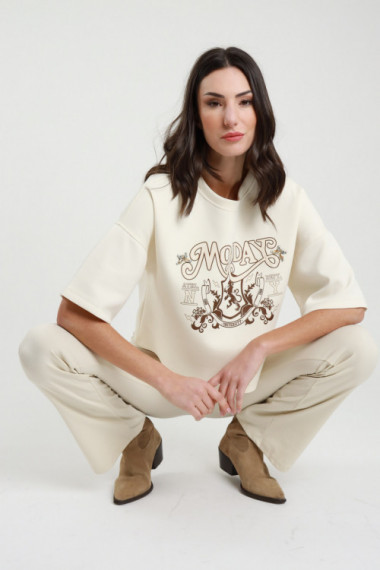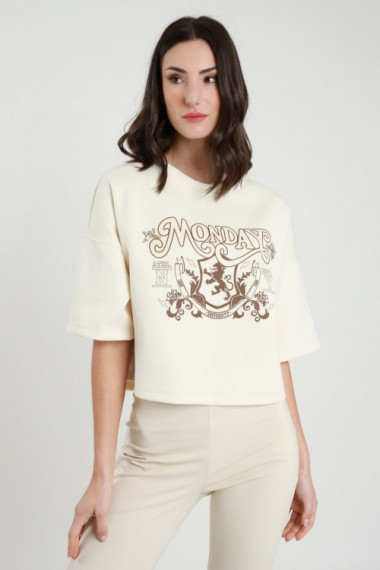 Felpa Over Crop a Mezze Maniche con Stampa "Monday".