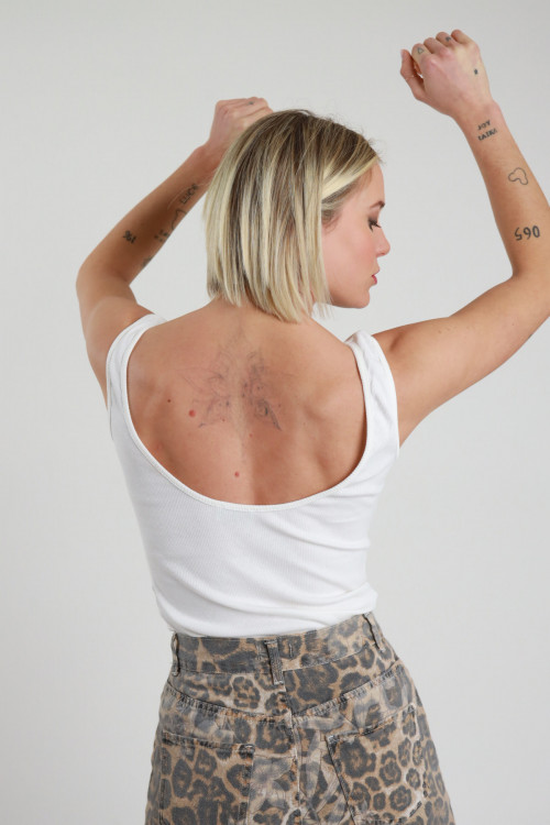 Canotta in Cotone Elasticizzato a Costine con Scollo a Bottoni Gioiello.