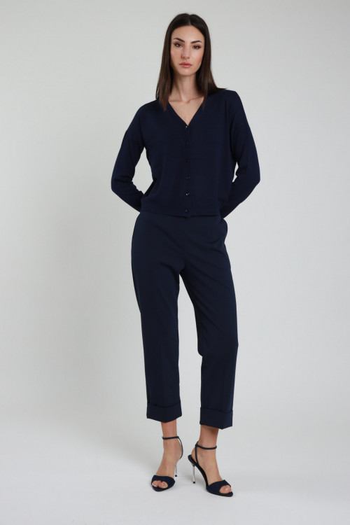 Pantalone Pinocchietto Con Risvolto, Elastico In Vita, tasche Portafoglio, Regular Fit.