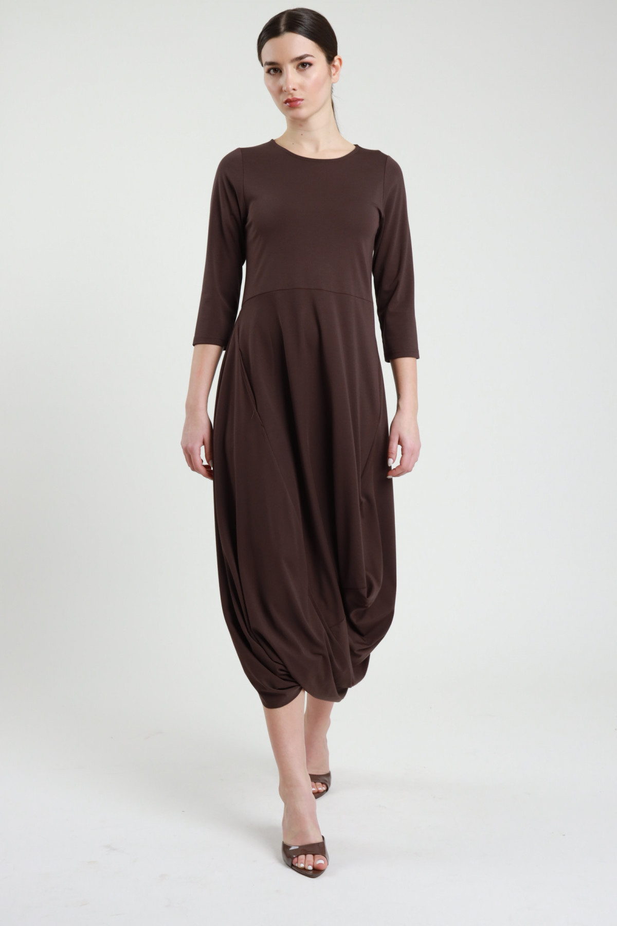 Abito Midi con Gonna a Palloncino, in Viscosa Elasticizzata.