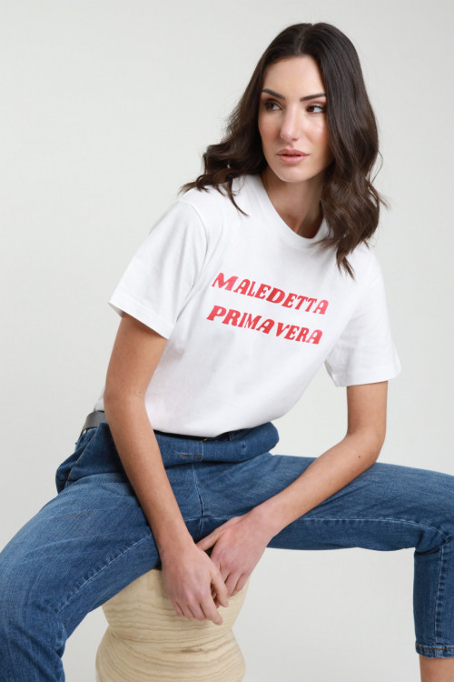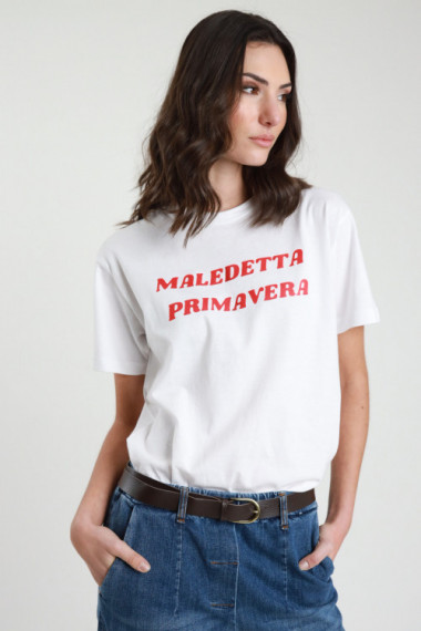 T-Shirt Girocollo Con Stampa "Maledetta Primavera", Fit Morbido. 100%co