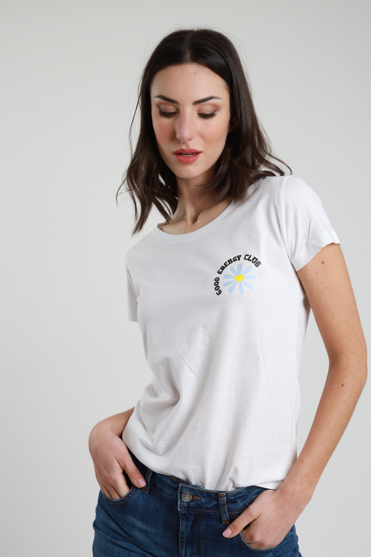 T-Shirt Maniche Corte Con Stampa "Good Energy Club" + Margherita. Slim Fit.