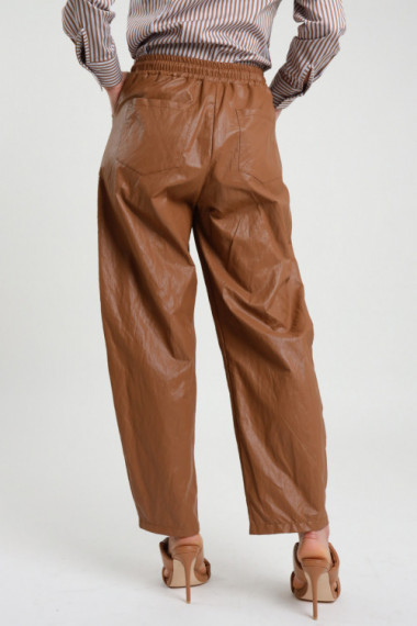 Pantalone Ovetto Ecopelle, Con Banda Elastica e Nastro A Contrasto. Gamba Dritta. 70%vi 14%pl 10%co 6%me+100%pl