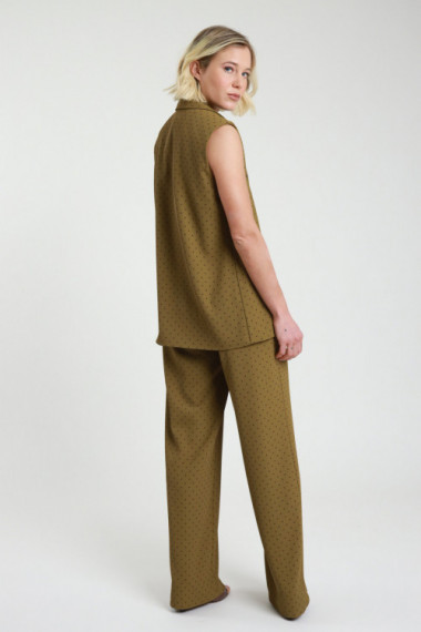 Completo a Pois composto da Gilet Over Monopetto + Pantaloni a Palazzo con Elastico sul Retro e Tasche Laterali.