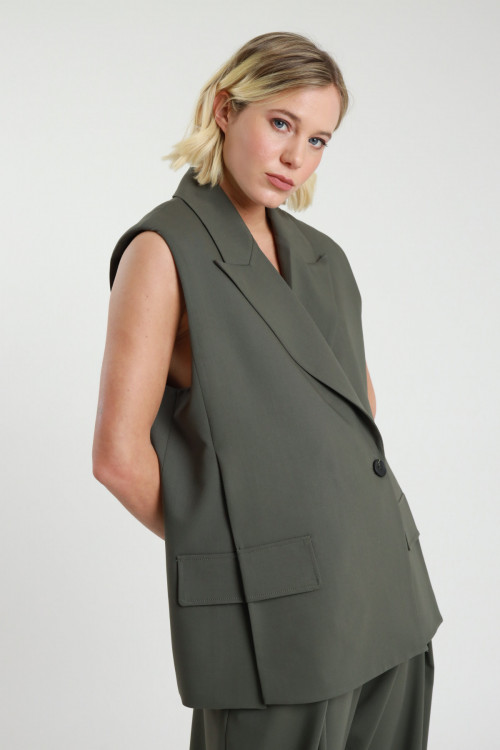 Gilet Oversize Doppiopetto con Ampi Spacchi Laterali con Pattina