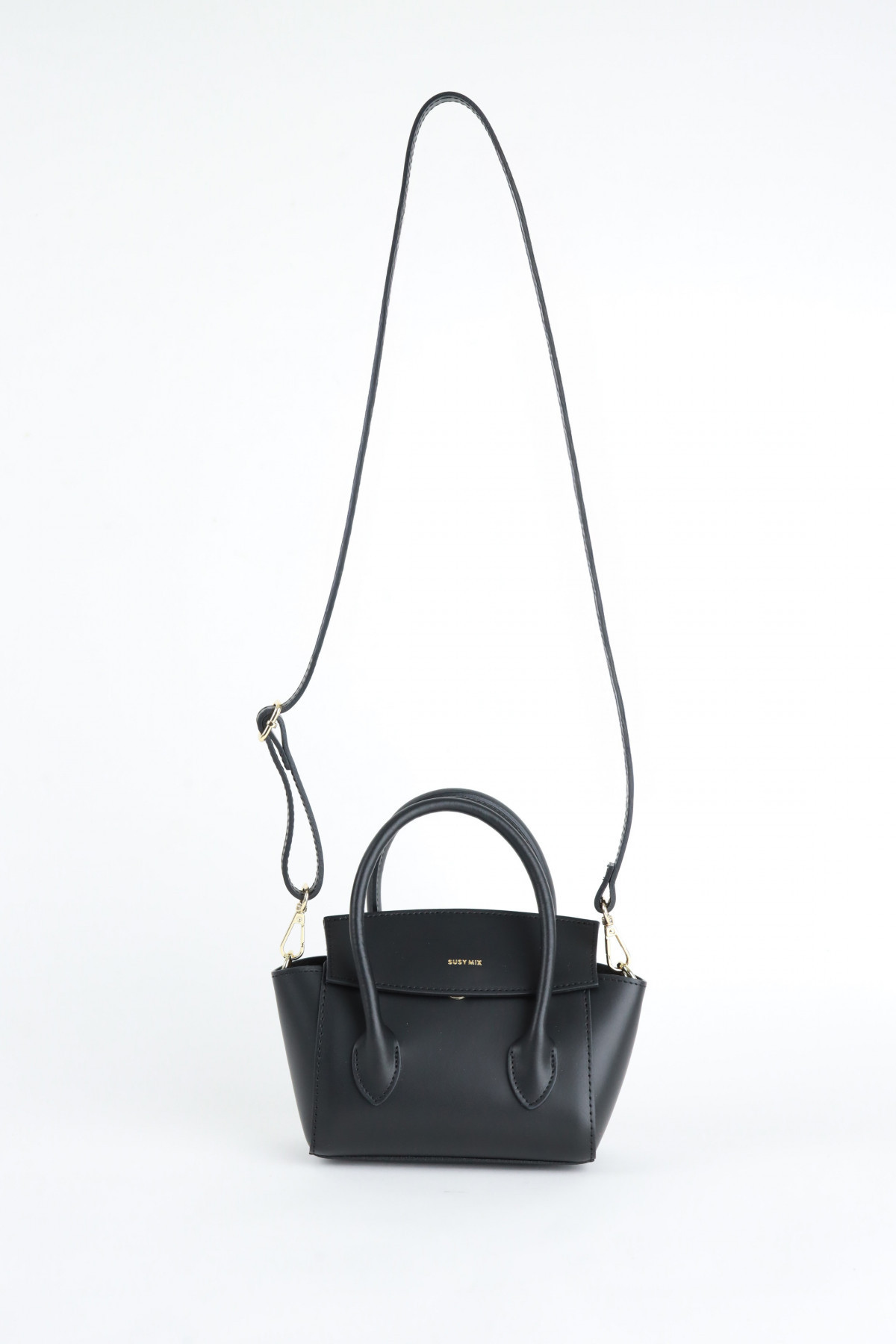 Borsina in Pelle con Manici e Tracolla Rimovibile, Chiusura Patta con Bottone.