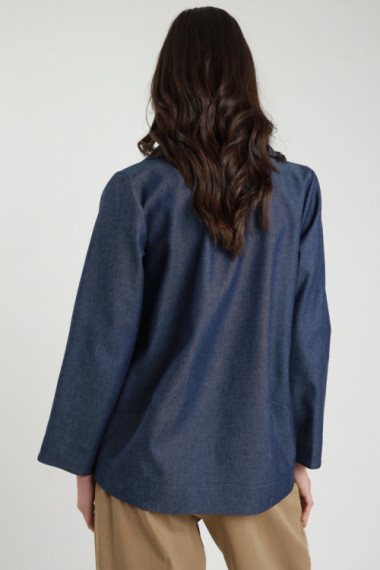 Bomber Over Chiusura Asimmetrica 1 Bottone sul Collo e Zip, Maniche a Palloncino.