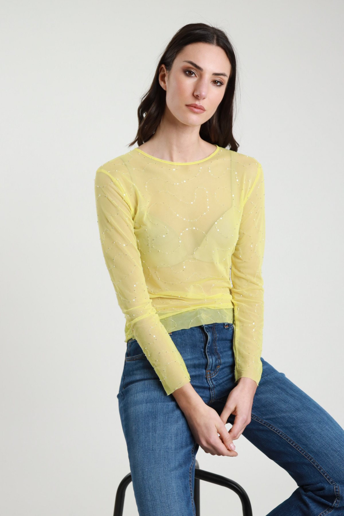Maglia in Tulle con Ricami Perline