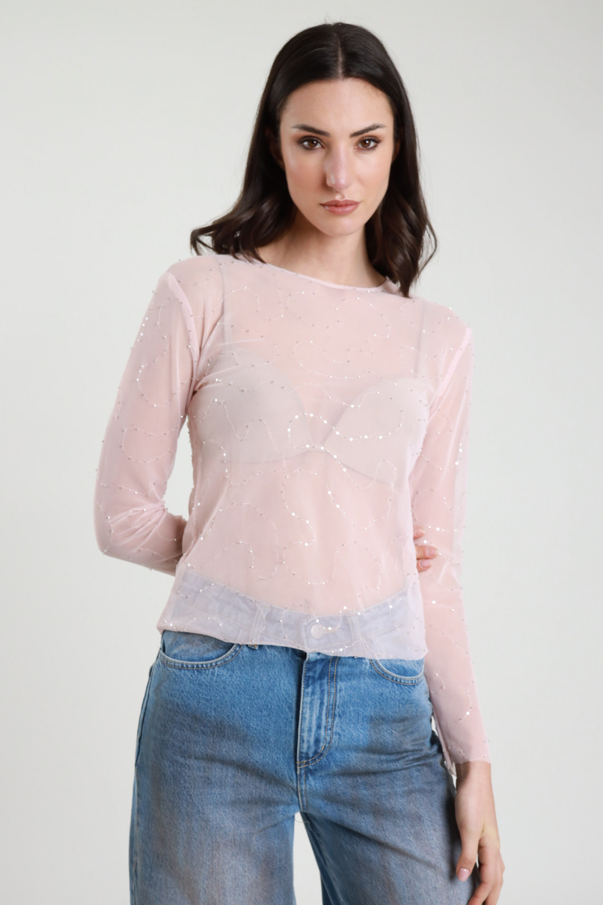 Maglia in Tulle con Ricami Perline