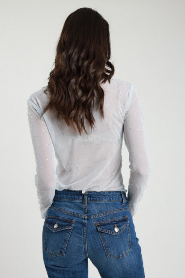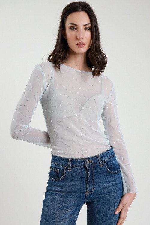 Maglia in Tulle con Ricami Perline
