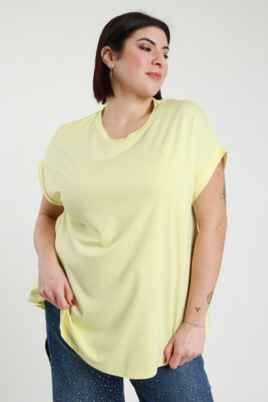 T-Shirt Maniche Corte Con Risvoltino, Taglio Svasato Sul Fondo, Vestibilità Morbida. Linea Curvy Susy Star.
