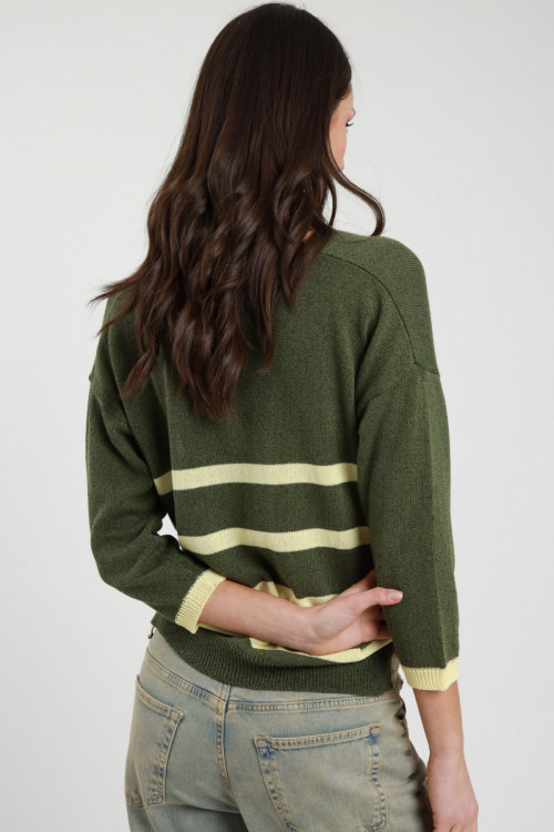 Maglia Spalla Scesa, con Scollo a V in Fantasia Rigata.